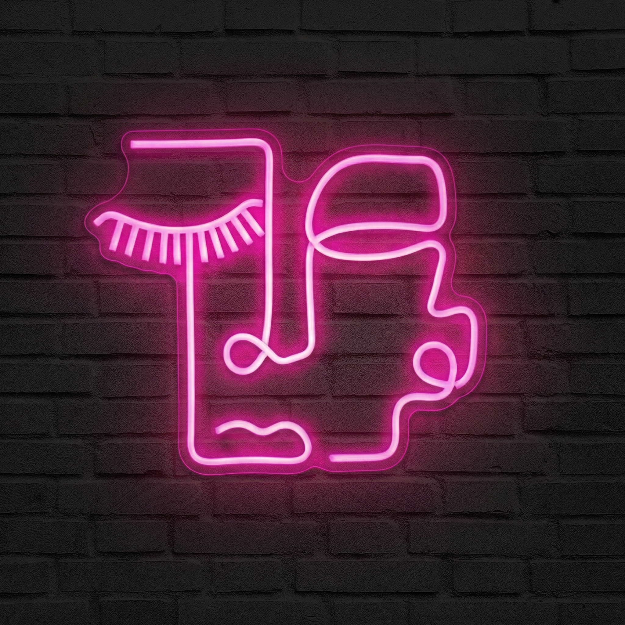 Illuminez vos murs avec ce néon rose inspiré du cubisme de Picasso : un visage stylisé en ligne continue, entre art moderne et décoration lumineuse unique.